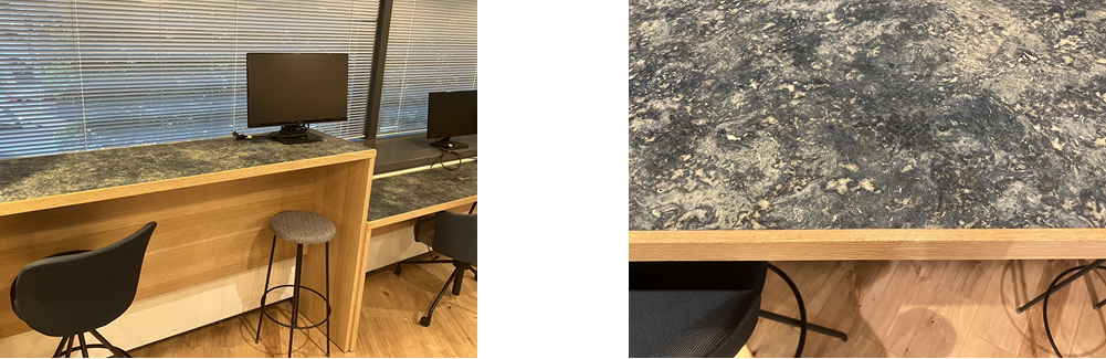 表面がデコボコなので、天板には不向き(WAYでは窓際カウンターの天板として使用しています)。使用する場面や用途は工夫する必要がある。 |